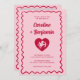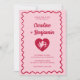 Retro Wavy Frame Red Pink Cupid Heart Wedding Einladung