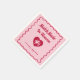 Hand-drawn, bold, and funky wedding napkins that blends vintage charm with modern flair. The design features a playful pink background framed by a wavy red outline, giving it a lively, retro vibe. The typography is fun, funky, and modern, with a nostalgic twist that makes the text pop in vibrant red. At the center, a heart motif with a cupid inside adds a whimsical, romantic touch, perfectly balancing elegance with cheeky charm. The overall look is funky yet sophisticated, with a hand-drawn aesthetic that feels both stylish and heartfelt—ideal for couples who want their wedding stationery to radiate personality, joy, and retro-modern love.