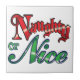 Vintage Illustration Frohe Weihnachtsfeiertage Cartoon Clip Art Text Design. Die Wörter "Naughty or Nice" geschrieben in glänzenden rot-grünen Weihnachtsbriefen.