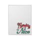 Vintage Illustration Frohe Weihnachtsfeiertage Cartoon Clip Art Text Design. Die Wörter "Naughty or Nice" geschrieben in glänzenden rot-grünen Weihnachtsbriefen.