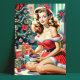 Retro Weihnachts-Button auf Postkarte