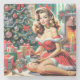 Retro Weihnachts-Button auf Steinuntersetzer