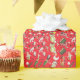 Schönes altes Weihnachtspapier aus der 50er Jahre. Helles rotes Papier mit allen Spielsachen, die Kinder am Weihnachtsmorgen unter dem Baum wollte.
