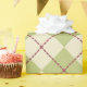Feine Raute in Grün und Creme mit dunkelroten Akzenten schmücken dieses Urlaubspapier. Das Design stammt aus der Originalkunst.