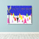 Die Retro-Weihnachtsbaumfarm Stretched Canvas Print besticht durch eine moderne, minimalistische, Cartoon-Familie, die auf der Suche nach dem perfekten Baum zum Beschneiden ist. Das Design zeigt Mama, Vater und Junior in einem farbenfrohen Weihnachtsbaumgrundstück im Stil der 60er Jahre, das wie in einem Fernsehurlaub-Special aussieht. Sie wurden dort durch die leuchtenden, gelben Scheinwerfer, die den Abend erhellen, und die Stränge der bunten Weihnachtslichter, die von Pol zu Pol aufgereiht sind, überrascht. Der schneebedeckte Platz bietet Bäume der Cartoon-Vielfalt. Erwarten Sie nicht, hier eine blaue Fichte zu finden. Aber wenn die Familie einen rosa, lila, gelben, orangefarbenen oder roten Baum will, haben sie Glück! Hey, es gibt sogar ein paar grüne Zedern, wenn sie sich entscheiden, einen traditionelleren Weg zu gehen. Der Schnee fällt weiter auf die fröhliche Familie, die in ihrem Urlaubskleid verdeckt ist. Junior trägt blaue Dungarees und ein Shirt, das röter ist als die Nase eines Rentiers. Vater trägt einen schwarzen Anzug mit einer hellgrünen Krawatte. Aber es ist die Mama, die den Spaß macht, ist der Kleiderschrank dieser Familie. Sie trägt ein rotes Kleid mit grünem Schnitt und einer passenden Weihnachtsmannmütze. Mama und Vater sind immer noch Konferenzen, ohne zu wissen, dass Junior macht einen verrückten Schlag in den heißen rosa Baum seiner Träume. Karo auf jeder Seite, Junior! Es täte nicht daran, einen Baum mit kahlen Punkten zu kaufen. Wüsstest du es nicht einfach? Der Baum ist so perfekt wie dieses Design. Wäre dieses Design sogar noch perfekter, würde man einen Kinderchor im Hintergrund singen hören.