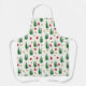 Diese Weihnachtsfeier-Schürze zeigt ein Retro-Urlaubsmuster von Urlaubsbäumen, Geschenken und vergoldeten Wirbel und den Farbtönen Grün, Dunkelrot und Gold auf weißem Hintergrund.