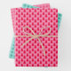Retrofarben und -muster für Weihnachten mit roter Kleidung auf Rosa und grün auf Grün/Rot auf roten Schneeflocken.