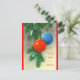 Auf einer Seite dieser festlichen Feiertagseinladung finden Sie Informationen über einen cremefarbenen Hintergrund mit hellen roten Rändern. Auf der anderen Seite steht "Das ist die Jahreszeit zu feiern" auf einem schönen Vintage-Bild von roten und blauen Weihnachtsblüten hängt von einem Kiefernzweig. Der gesamte Text ist leicht anzupassen, sodass Sie ihn sagen können, was Sie wollen.