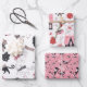 Retro Weihnachtskatzen. Ein Triple Pack mit lustigen und trendigen Farben für Weihnachten: rosa, schwarz, weiß und grau. Dieses Bündel von drei Blättern ist auf jedem Blatt anders gestaltet. Retro Weihnachtskatzen Pink Gray Wrapping Paper Sheets.