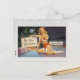 Postkarte, die eine Vintage Fünfzigerjahre Illustration eines Pinupmädchens in einem Sankt-Anzug kennzeichnet. Retro cooles!