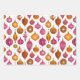 Retro Weihnachtsschmuck aus der letzten Mitte des Jahrhunderts sind noch niedlich und geschätzt heute. Dieses Muster aus den 1950er Jahren ist in Aquarellbildern mit Baubeln und Ferienakzenten gehalten. Die Blätter des Packpapiers in diesem Set haben die gleichen bunten Glühbirnen in Magenta- und Orangetönen. Allerdings hat jedes der 3 Blätter eine andere Größe des Musters.