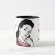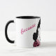 Diese niedliche Tasse zeigt ein Retro-Bild einer brünetten Frau mit rotem Lippenstift, und der Text in schwarz und rosa, der sagt: "WEIL ich die MAMA bin...WARUM." Eine dieser bewährten "Mama"-Redewendungen, die auch heute noch nützlich ist!