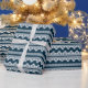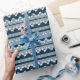 Retro-weiße Spitze mit Schmetterlingen auf dunkelb Geschenkpapier