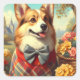 Retro Welsh Corgi Cardigan Painting Quadratischer Aufkleber