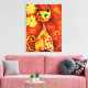 Retro Whimsical Cat Kitty Floral Yellow Orange Leinwanddruck