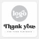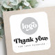 Square Business danke Ihnen Aufkleber mit dem Text "Danke" in einem Retro-Stil Schriftart und personalisierbaren Text "für Ihren Kauf". Schwarzer Text (oder benutzerdefinierte Farbe) auf weißem Hintergrund. Laden Sie Ihr Logo hoch. Mit dem Designwerkzeug können Sie Farben ändern, Elemente verschieben und verändern.