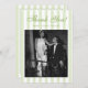 Retro White and Green Striped Wedding Photo Dankeskarte