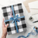 Retro White Black Weihnachten Neujahr Tartan Karierte Wrapping Paper.