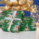 Retro White Christmas Trees Green Geschenkpapier