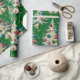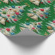 Dieses Verpackungspapier zeigt ein skurriles und Retro-Weihnachtsthema. Dieses Design zeigt ein sich wiederholendes Muster flauschiger, weißer Weihnachtsbäume, die mit farbenfrohen Vintagen Ornamenten und beatmeten Garnelen geschmückt sind. Dieses Design ist Set vor einem lebendigen grünen Hintergrund. Dieses charmante Papier eignet sich perfekt für alle, die das nostalgische Ambiente eines Urlaubs aus der Mitte des Jahrhunderts Lieben.
