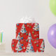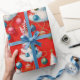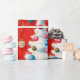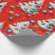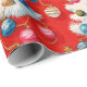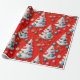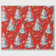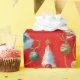 Dieses Verpackungspapier zeigt ein skurriles und Retro-Weihnachtsthema. Dieses Design zeigt ein sich wiederholendes Muster flauschiger, weißer Weihnachtsbäume, die mit farbenfrohen Vintagen Ornamenten und beatmeten Garnelen geschmückt sind. Dieses Design ist Set vor einem lebendigen, roten Hintergrund. Dieses charmante Papier eignet sich perfekt für alle, die das nostalgische Ambiente eines Urlaubs aus der Mitte des Jahrhunderts Lieben.