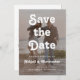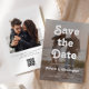 Dieses Foto Hochzeit Speichern Sie die Date-Karte enthält ein Texteüberlagerungs in weißer Retro-Typografie über einem vertikalen Foto. Ein grauer Bildschirm hilft, den Text-Pop zu machen. Auf der Rückseite fügen Sie ein zweites, quadratisches Foto, zusammen mit einem zusätzlichen Text und einem QR-Code, um die Gäste zu Ihrer Hochzeitswebsite zu leiten. Verfügbar als gedruckte Karte oder digitaler Download.