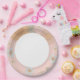 Fügen Sie der kleinen, zum Geburtstag gehörenden Dekoration eine Touch hinzu, die mit den Tellern zum Thema Retro-Wildblume ergänzt wird.