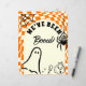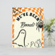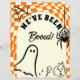 Retro We've Booed You've Booed Game Sign - Ein lustiges Retro-Schild "We've Been Booed" mit eigenartigen handgezeichneten Figuren aus einem spukhaften Geist, Spinnennetz, Kürbislaterne geschnitzten Kürbis, lollipop Süßigkeiten und Spinne auf einem Diskoball. Ideal für "You've Been Booed" Neighborhood Game, um mit Nachbarn und Freunden zu spielen und den Spaß behalten, der in dieser schönen Halloween-Saison gemacht wird. Alle Texte können bearbeitet werden.