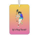 Cooles Retro-Damentennis-Design auf einem handlichen Automobil-Lufterfrischer! Große kleine Geschenke für Teamkollegen und Trainer, oder als kleine Geschenk für alle, die Schlägersport Liebe. Sehr schöner rosa und gelber Farbverlauf mit dem eigenen Text am unteren Rand.