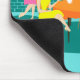 Dieses Retro Women's Weekly Card Game Mousepad verfügt über einen Cartoon zeichnend vier moderne Frauen aus der Mitte des Jahrhunderts in einem Henne-Party. Sie sind in einem stilvollen Speisesaal untergebracht. An einer türkisfarbenen und aquamarinen Ziegelmauer befindet sich ein moderner Globe-Kunstdrucker aus dem Mittelalter, der aus dem Zazzle-Geschäft von StrangeLittleOnion stammt. Meine, sie haben einen guten Geschmack! Durch Schiebetüren aus Glas können wir die üppigen grünen Rasen der Vorstädte sehen. Auf der anderen Straßenseite befindet sich ein elegantes, orangefarbenes Haus mit einem rosa und weißen Auto, das im Carport geparkt ist. Im Speisesaal sitzen drei Frauen an einem runden Tisch mit orangefarbenem Tischdecken. In einem gelben Kleid ist ein Rotkopfteil, in einem grünen Kleid ein brünettes, in einem roten Kleid ein blondes Kleid. Sie halten Karten in ihren Händen. Vier Teekuchen sind auf dem Tisch gewartet, um von der raven haarigen Hostess in einem rosa Wackelkleid gefüllt zu werden. Sie trägt ein Tablett mit einer Teekarte, die darauf geklebt ist. Alle Frauen haben eine wunderbare Zeit, aber sie sollten vermutlich ein Auge auf die Blondine behalten haben. Wenn die Karte, die sie hinter ihrem Rücken hält, irgendein Hinweis ist, betrügt sie!