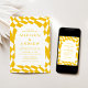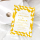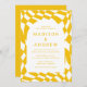 Erleben Sie den besonderen Tag mit den stilvollen Retro Yellow Checkerboard Hochzeitseinladungen! Die Einladung zeigt Ihre Namen und Hochzeitsdetails in gelber Schrift, umgeben von einem weißen Bogen Rahmen. Der Hintergrund weist ein abstraktes Schachbrettmuster mit gelben und weißen Farbschemata auf.