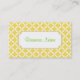 Ein fröhliches gelb-weißes Muster schmückt diese stilvolle Visitenkarte. Passen Sie diese Visitenkarte an, um Ihren Anzug zu gewährleisten. Informationen hinzufügen oder löschen, den Stil des Schriftartes ändern, die Größe des Schriftartes ändern, usw...Das Design stammt aus der Originalkunst. Verwenden Sie diese stilvolle Visitenkarte für einen Wellness-Center, Salon, Kleinunternehmen, Wohngestaltung, Veranstaltungsplaner, Kinderbetreuung, etc...