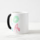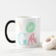 Retro-Yoga-Typografie mit Silhouetten von Posen Verwandlungstasse