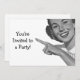 Einladungen mit einer Vintagen Illustration einer jungen Frau in den 50er Jahren. Passen Sie diese mit Ihrer eigenen Hintergrundfarbe und Text an. Retro cool!