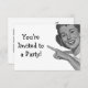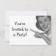 Einladungen mit einer Vintagen Illustration einer jungen Frau in den 50er Jahren. Passen Sie sie mit Ihrem eigenen Text an. Ideal für eine Geburtstagsfeier für eine Frau. Retro cool!