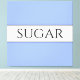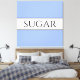 Dieses lustige, nostalgische Design zeigt Text in einem breiten weißen Mittelstreifen, der mit schwarzen Pinstreifen gegen hellblau gelbe Streifen im Hintergrund hervorgehoben wurde. Der SUGAR-Text kann personalisiert sein.