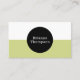 Das Retro-Styling hebt dieses individuelle Design der Visitenkarte in zweifarbigen Farbblöcken hervor. Die Farben sind grün und weiß mit einem kontrastierenden schwarzen, kreisförmigen Rahmen, der den Text umgibt. Dieses vielseitige Design ist eine wunderbare Wahl für viele Berufe. Personalisieren Sie die Textvorlage auf beiden Seiten dieser Karte mit Ihren Daten.