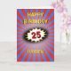 Der Hintergrund für diese aufschlussreiche Geburtstagskarte ist eine Explosion in tiefrot und blau mit einem gelbsägeligen zentralen Wolkenbruch. Es gibt ein Vintages Comic Retro-Ambiente im Design mit knalligen, hellen Farben und Bildern. Sie können den Gruß zum Geburtstag von Happy bearbeiten, die Zahl bearbeiten, den Namen ändern und auch die Nachricht innerhalb personalisieren (oder die Standard-"Ein Vierteljahrhundert. Das erfordert eine Feier!")