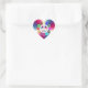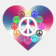Ein großes weißes Schild mit knalligen, farbenfrohen, blauen und roten Farbtönen umgibt ein weites, weißes Schild, das auf einem grobkörnigen, roten, weißen und blauen Hintergrund zum Frieden einlädt.