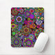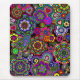 Eine Mausunterlage mit einem lebhaften und bunten Entwurf der Friedenszeichen, des Paisleys, der ankhs, der Herzen und der Blumen. Ein far-out Blitz zurück zu den sechziger Jahren.