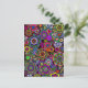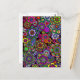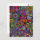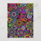 Eine Postkarte mit einem lebhaften und farbenfrohen Design von Friedensschildern, Pisley, Knöchel, Herz und Blume. Ein weit reichender Blitz zurück in die 1960er Jahre.