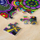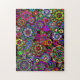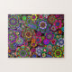 Ein Puzzle mit einem lebhaften und bunten Entwurf der Friedenszeichen, des Paisleys, der ankhs, der Herzen und der Blumen. Ein far-out Blitz zurück zu den sechziger Jahren.