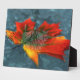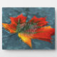 An einem regnerischen Herbsttag spiegelt das Wasserbecken eines gefallenen Ahornblattes den Baum wider, von dem es stammt.