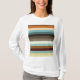Dieses Design weist horizontale Streifen in verschiedenen Vintagen Farben auf, wie braun, orange, beige, blau, schwarz, grau und weiß. Es zaubert den Stil der Mitte des 20. Jahrhunderts.