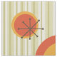Ein modernes abstraktes Kunstdesign aus der Mitte des Jahrhunderts mit beigen Streifen, fett orangefarbenen und aquamarinen Formen sowie Sputnik-Sternexplosionen.