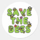 Rett Die Bienen zeigen die Wörter mit Blume und vielen Bienen, die herumbummeln. Eine positive ökologische Botschaft, die auf unterhaltsame Weise gemacht wurde. Bienen... rett sie.