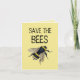 Helfen Sie, die Bienen retten! Sie verschwinden in alarmierendem Tempo. Auf der Vorderseite ist ein Vintage-Bild einer Biene. Innen ist leer für Ihre Notizen/Begrüßungen und beide Seiten sind gelb getönt. Auf der Rückseite finden Sie Informationen, wie man die Bienen rette.