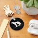Das ist ein Schwarz-Weiß-Design eines heulenden Wolfs mit ihrem Wolfsjungen. Viele Wolfsarten (darunter der graue Wolf) sind noch immer vom Aussterben bedroht. Im Text steht "Rett die Wölfe". Dieses Design kann personalisiert werden, indem Sie eigene Texte oder Bilder hinzufügen.