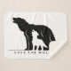 Das ist ein Schwarz-Weiß-Design eines heulenden Wolfs mit ihrem Wolfsjungen. Viele Wolfsarten (darunter der graue Wolf) sind noch immer vom Aussterben bedroht. Im Text steht "Rett die Wölfe". Dieses Design kann personalisiert werden, indem Sie eigene Texte oder Bilder hinzufügen.