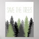 Dieses Plakat mit einem Walddesign und der Meldung "Rett die Bäume" macht es zu einem großartigen Poster für den Earth Day!